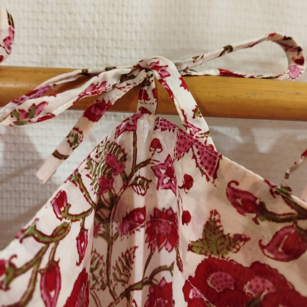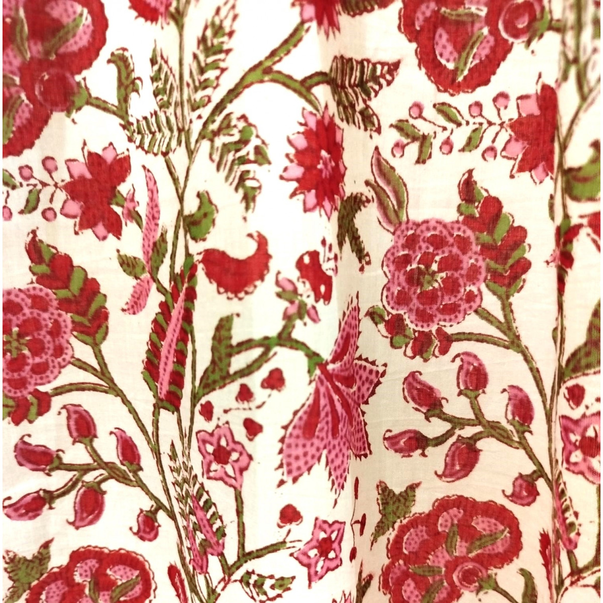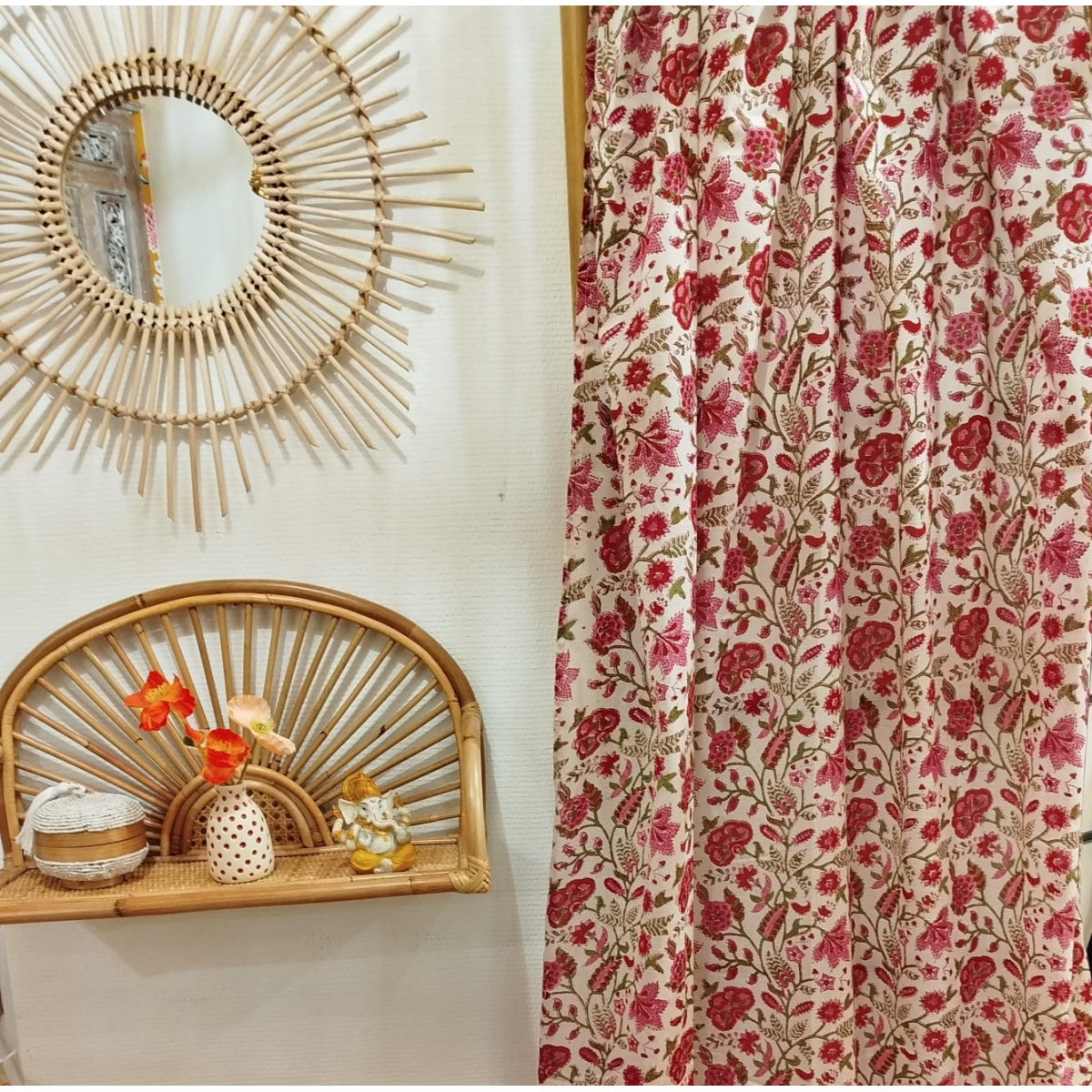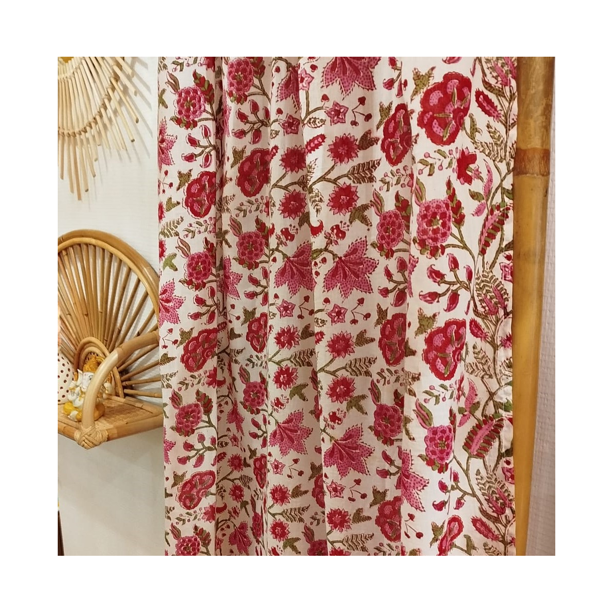 Léger et élégant, il diffuse joliment la lumière tout en habillant vos fenêtres d’un motif floral rouge et rose sur fond blanc inspiré des imprimés artisanaux indiens.