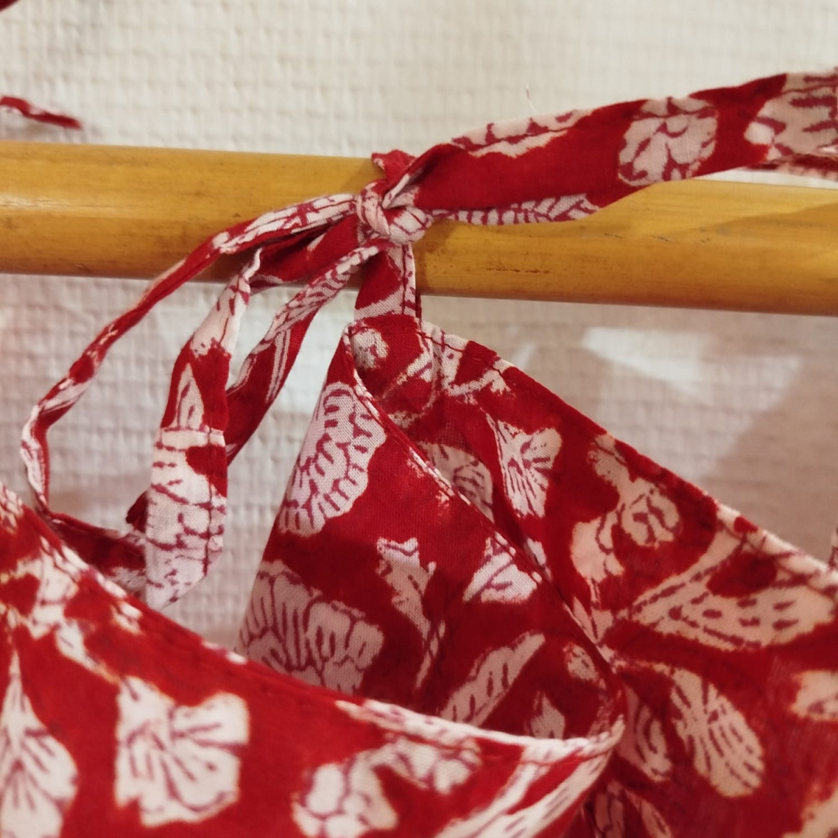 * Motif : imprimé floral rouge intense d’inspiration block print