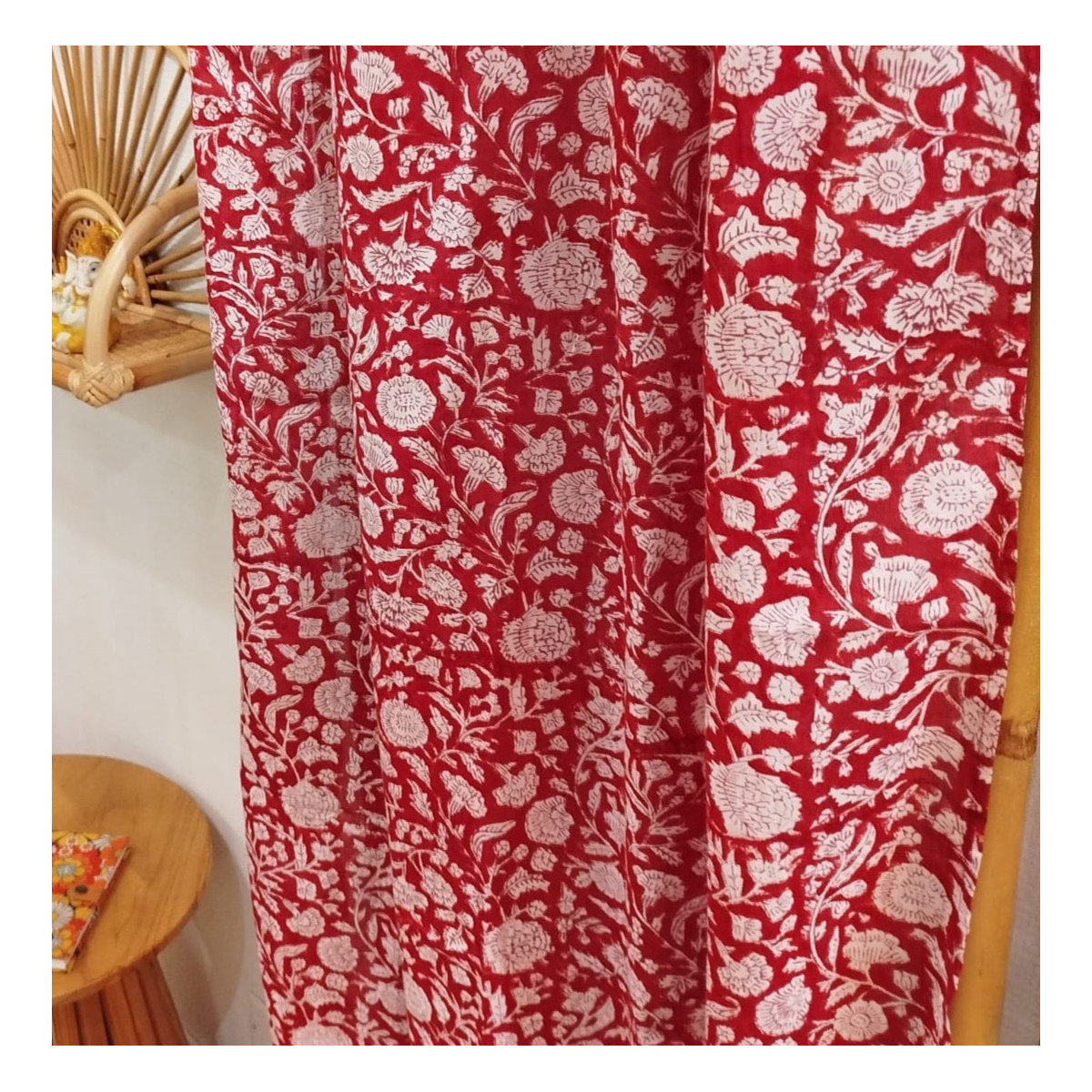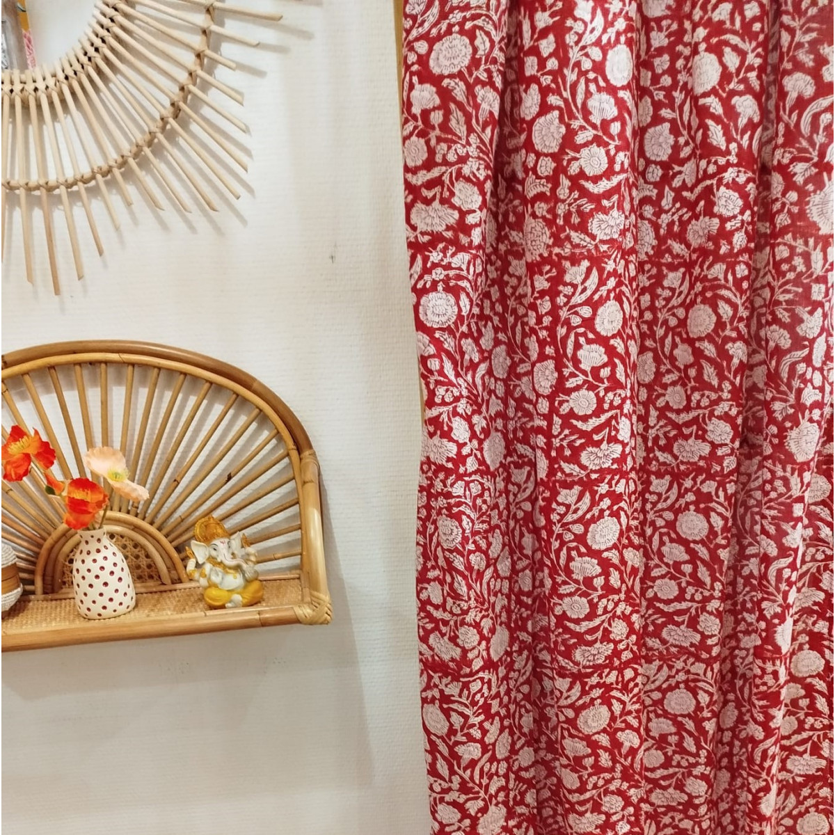 Léger et élégant, il diffuse joliment la lumière tout en habillant vos fenêtres d’un motif floral rouge intense inspiré des imprimés artisanaux indiens.