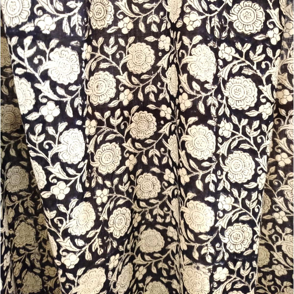 * Motif : imprimé floral crème sur fond noir d’inspiration block print