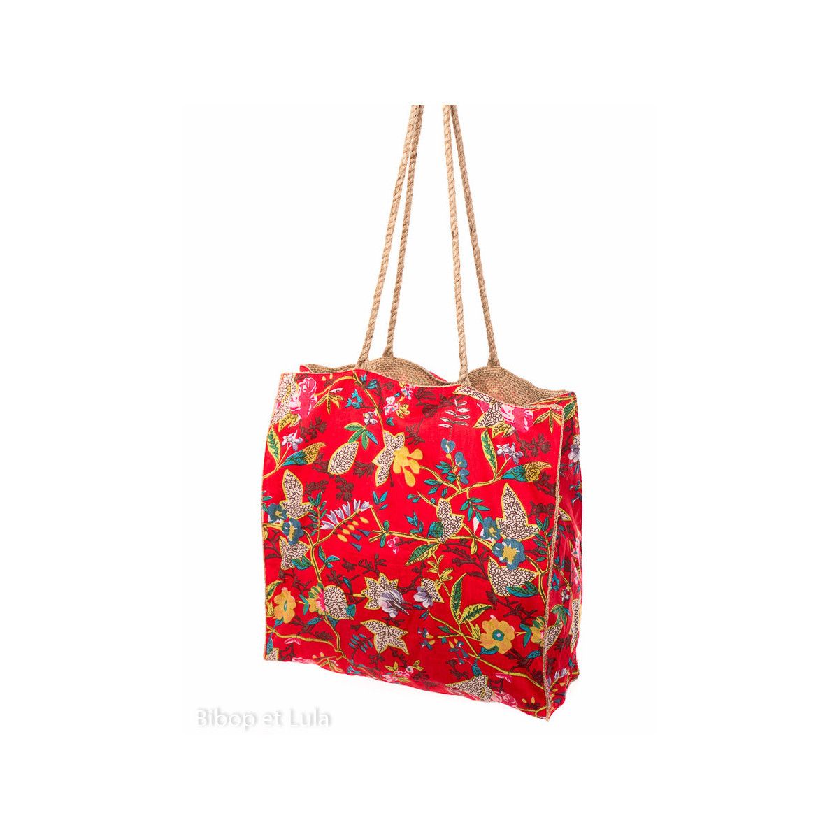 Extérieur en coton imprimé, intérieur et anses en toile de jute souple .