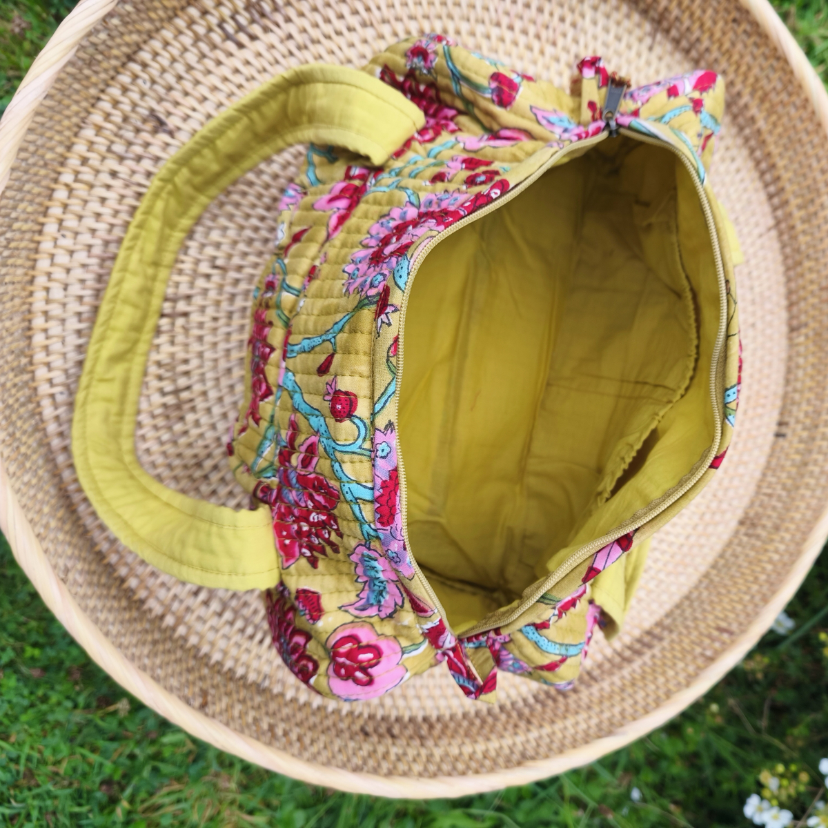 Craquez pour le sac à main matelassé Thaila, une création unique Bibop & Lula qui allie charme artisanal et praticité au quotidien. Confectionné en coton matelassé, ce sac léger et résistant se distingue par son imprimé floral coloré, inspiré des motifs traditionnels d’Asie.