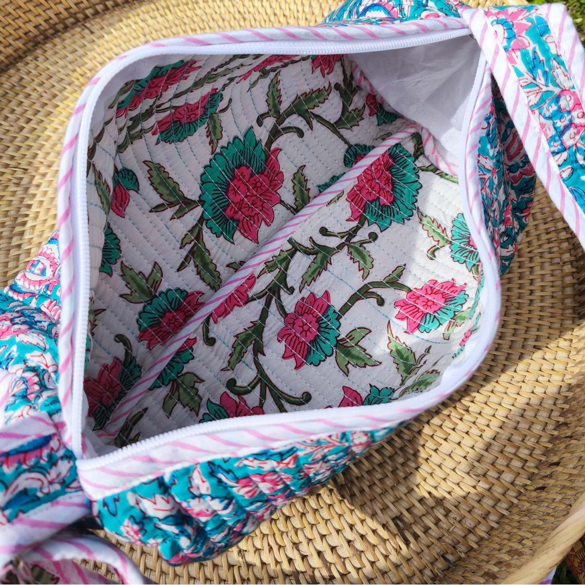 Son tissu matelassé aux motifs fleuris colorés, entièrement confectionné à la main, en fait un accessoire original et tendance, parfait pour accompagner vos journées actives.
