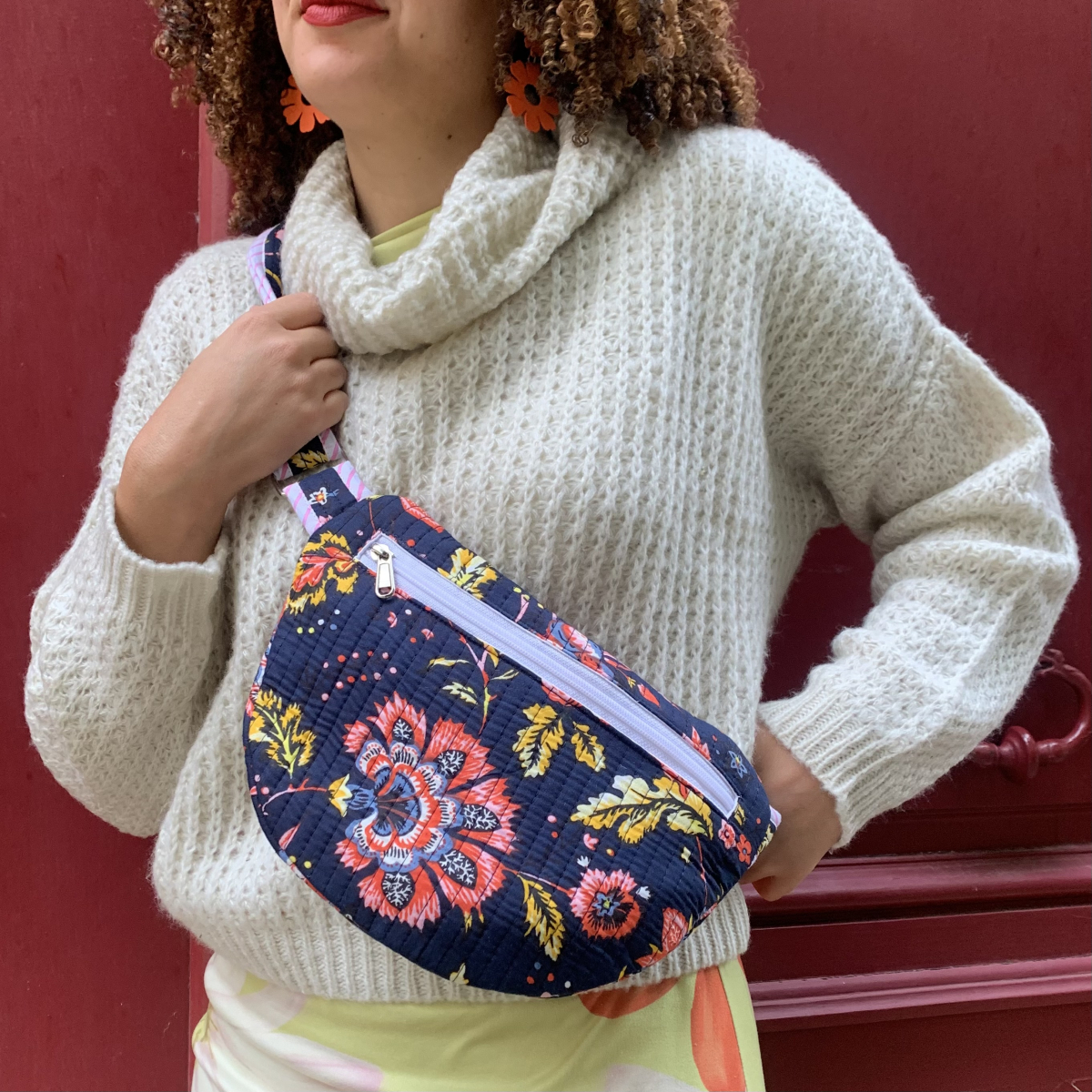 Adoptez un style unique avec cette banane matelassée aux motifs fleuris.