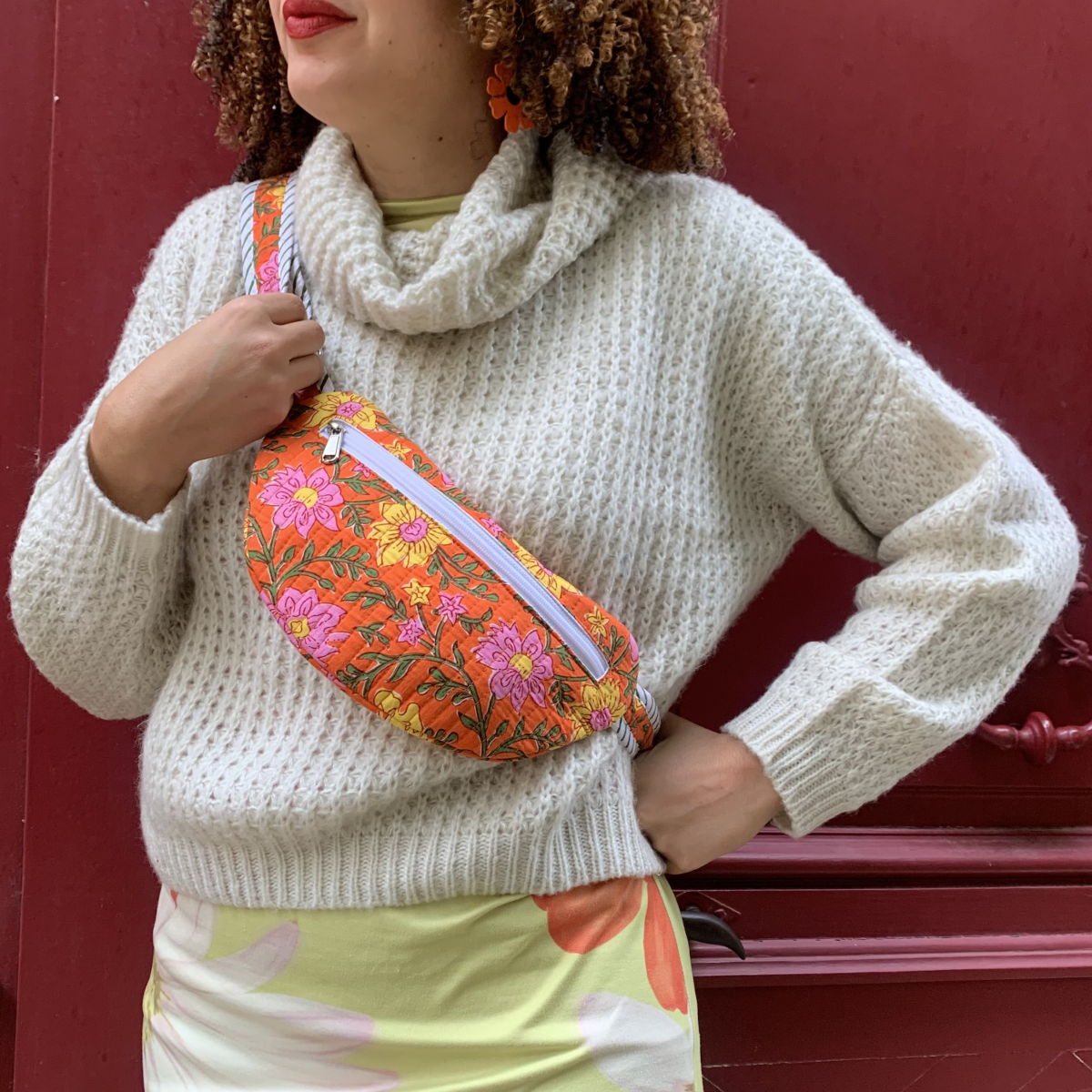 Adoptez un style unique avec cette banane matelassée aux motifs fleuris.