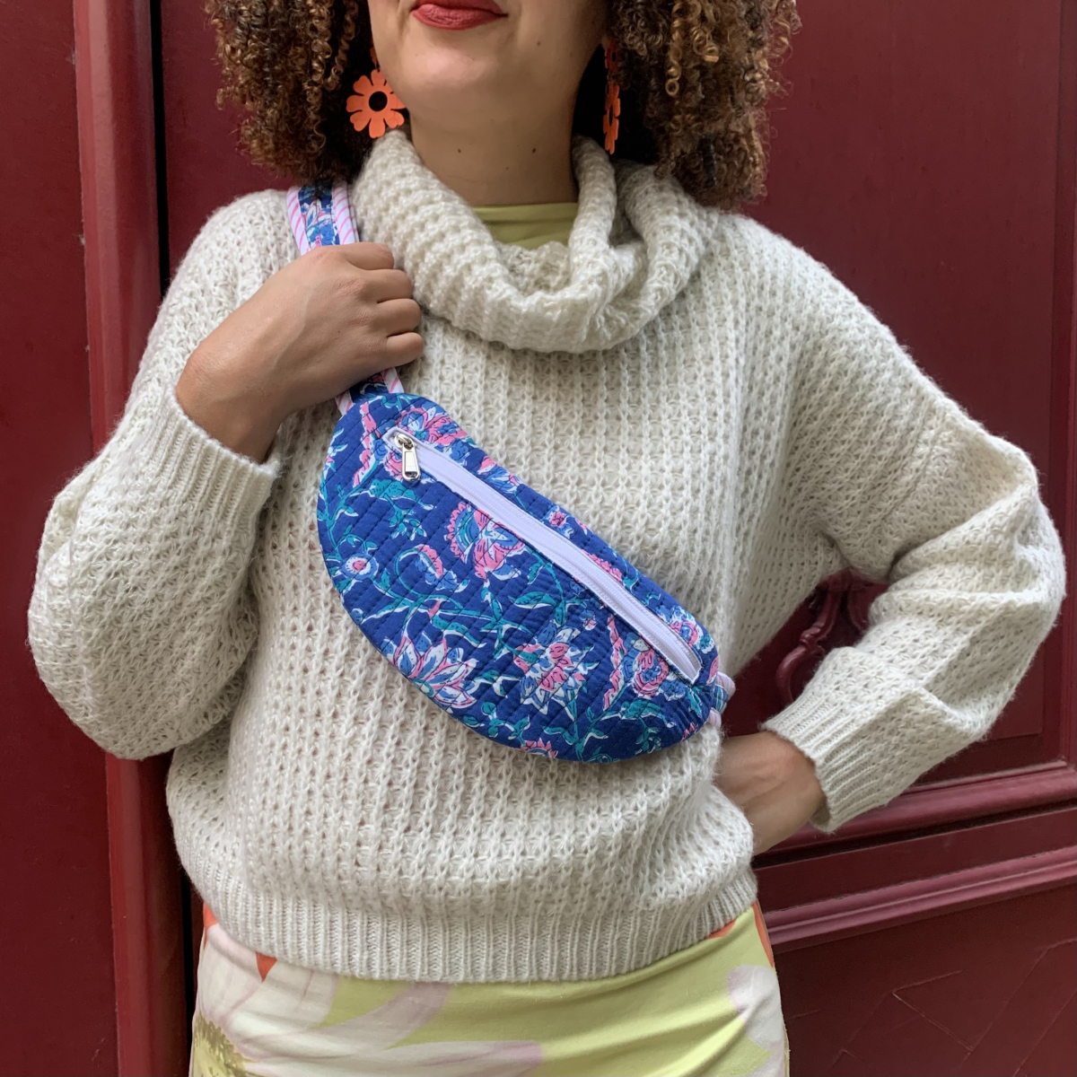 Adoptez un style unique avec cette banane matelassée aux motifs fleuris.