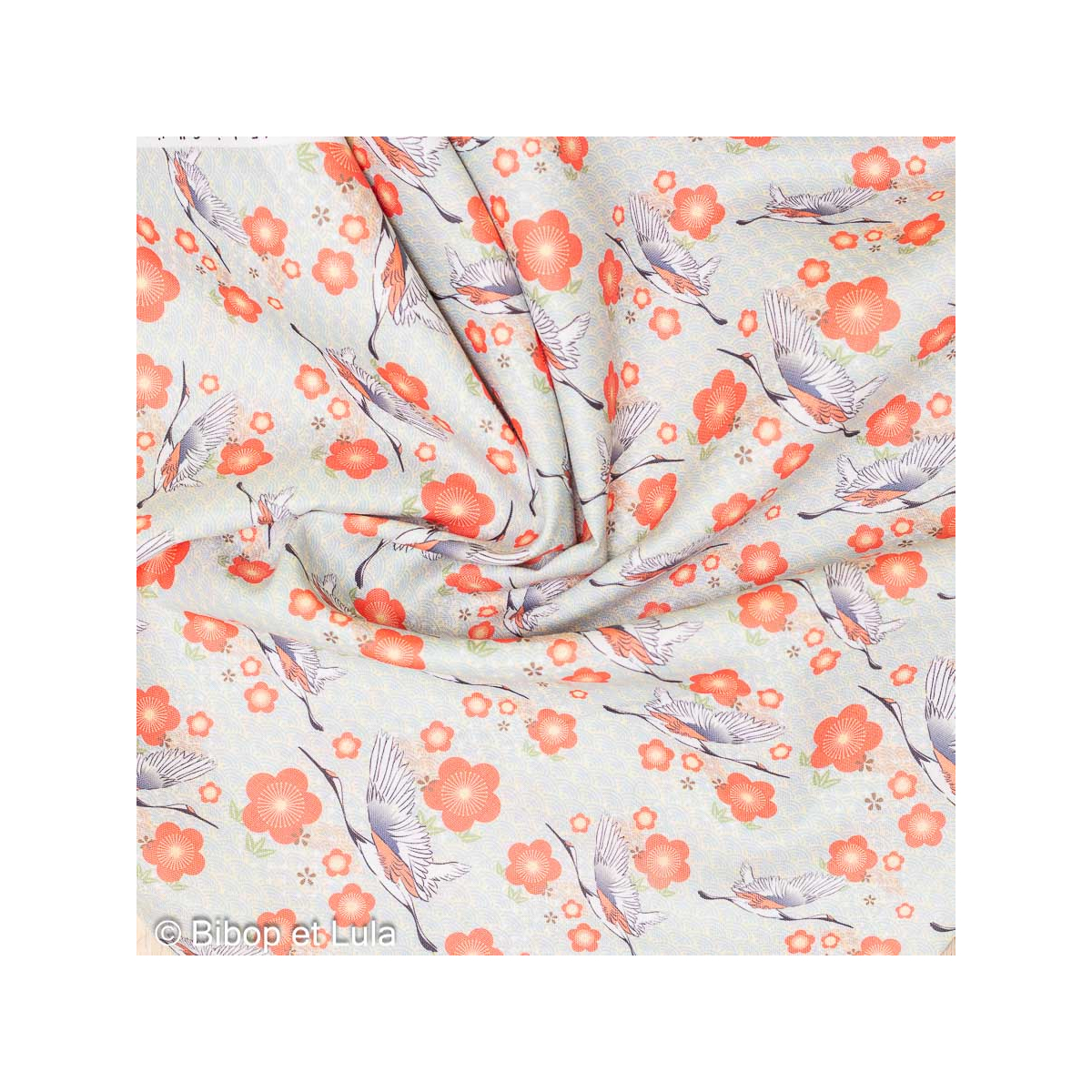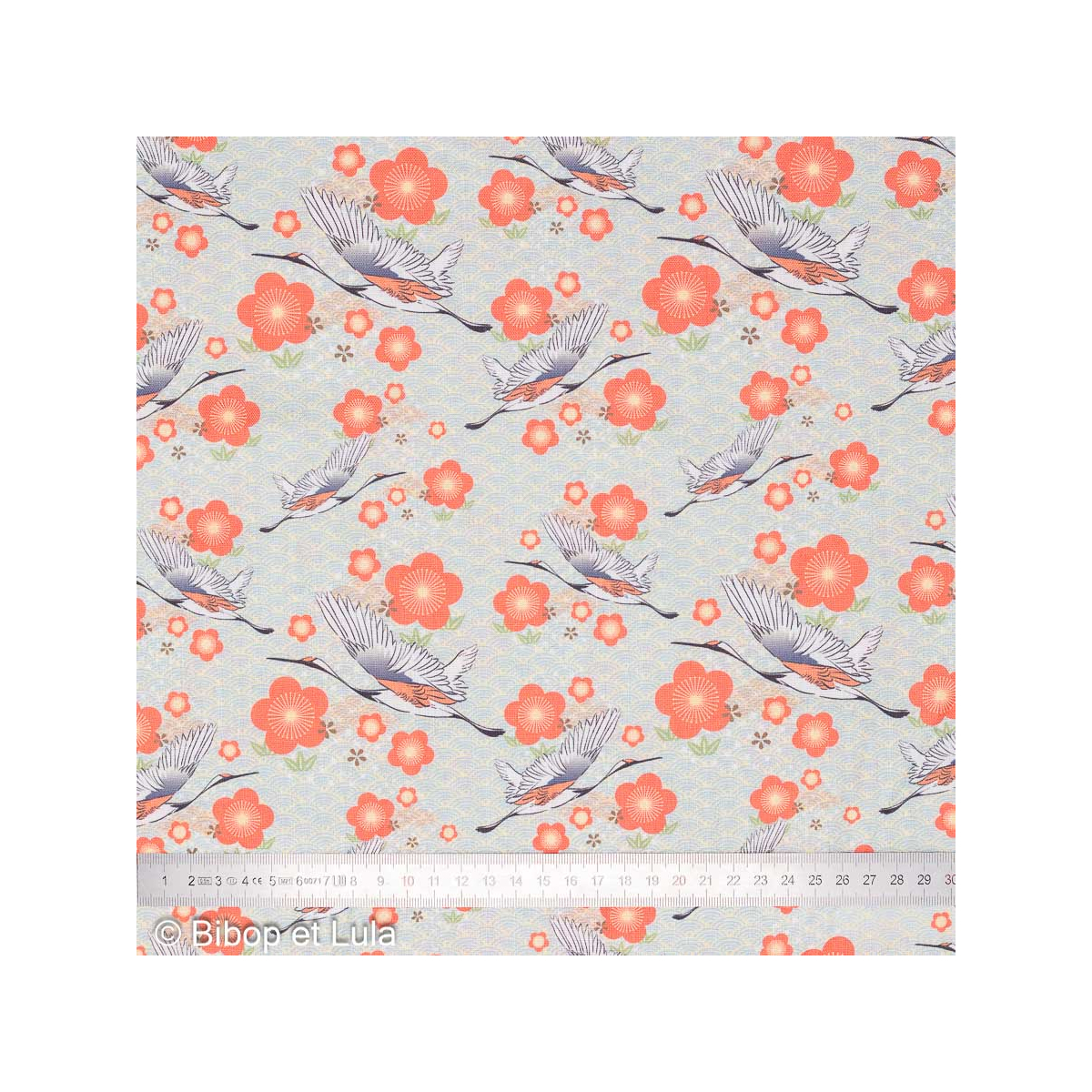 * Motif : grues japonaises fleurs de pruniers et motif géométrique