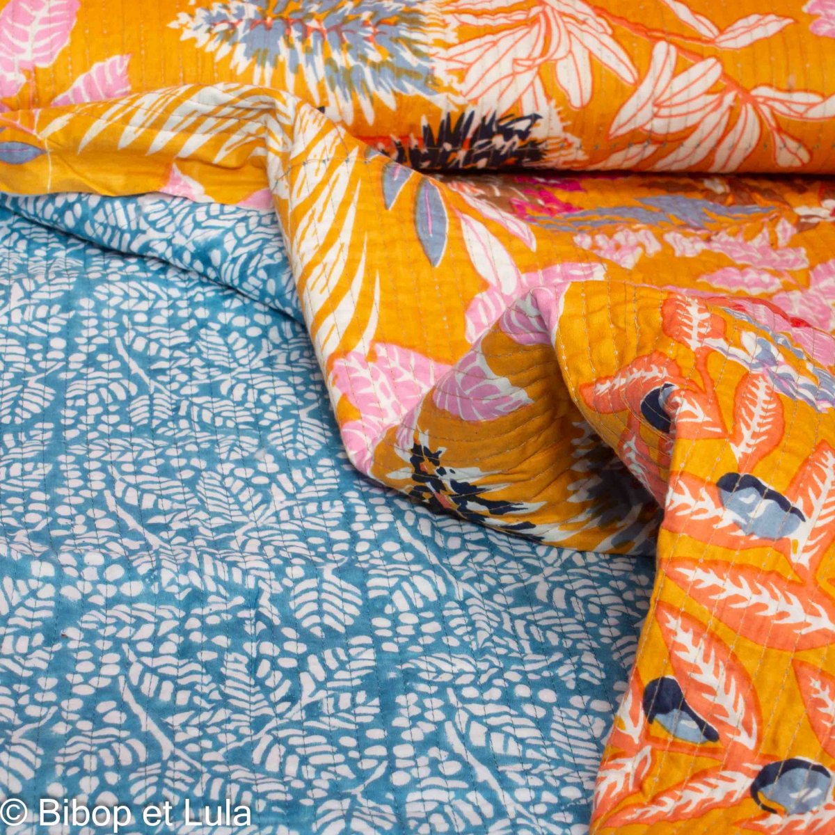 Notre tissu en coton matelassé Riur est réversible.