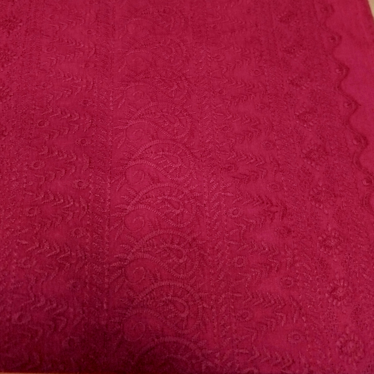 Apportez une touche bohème chic à vos créations avec cette broderie anglaise en viscose au coloris framboise