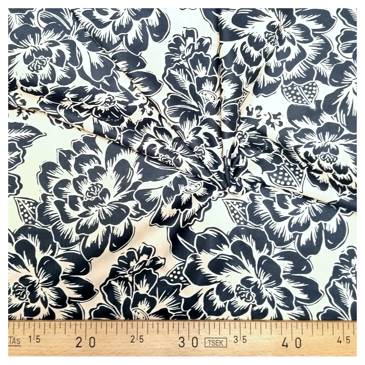 D'imposantes fleurs noires se détachent sur un fond écru, apportant féminité et raffinement à vos tenues.