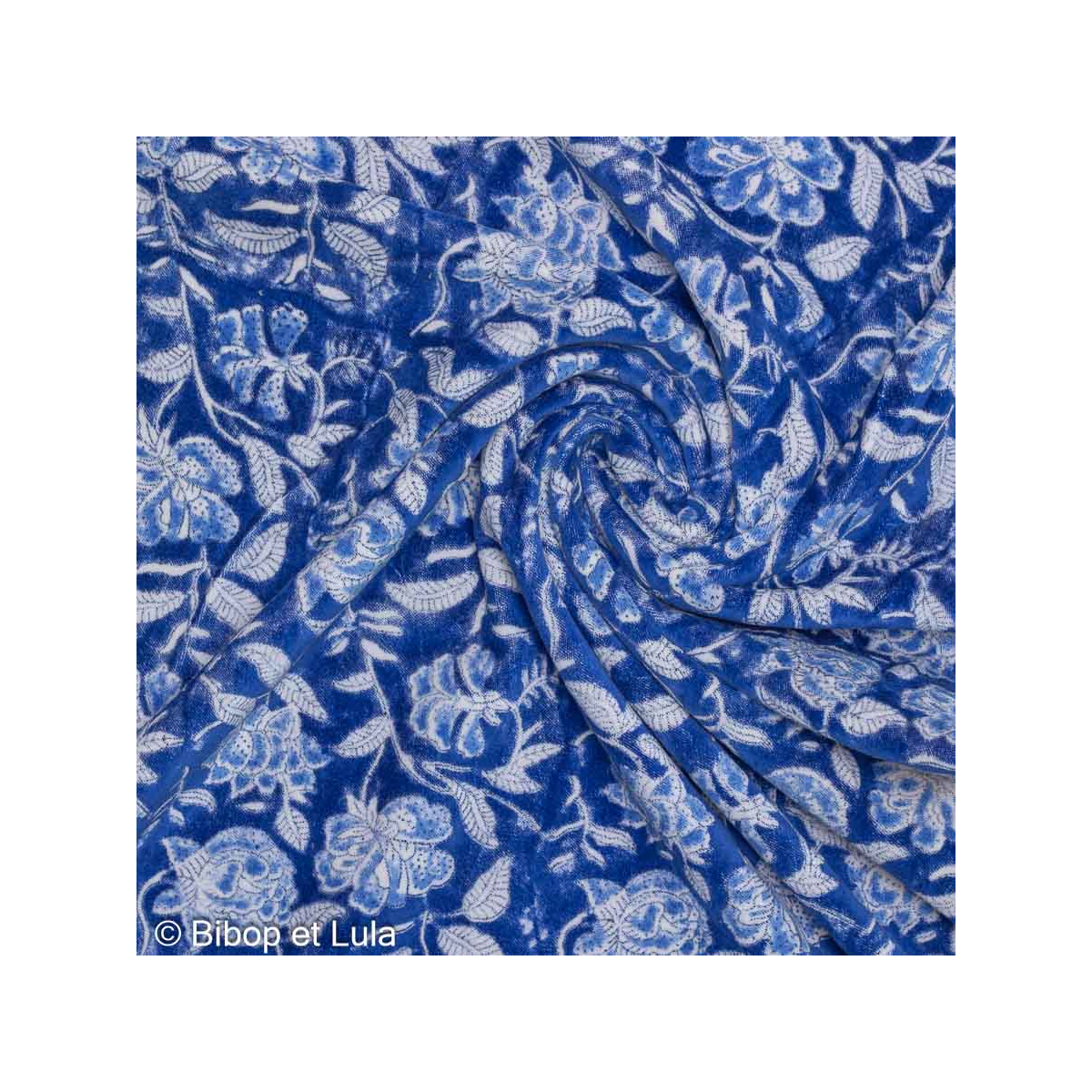 Son motif floral bleu et blanc sur fond bleu évoque le savoir-faire traditionnel indien, tout en offrant le confort naturel du coton.